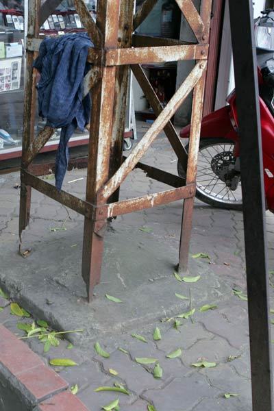 Cây cột điện bằng sắt hộp tại ngã tư Đại La - Bạch Mai mà theo lời anh Tuấn - chủ nhân ngôi nhà liền kề cho biết: "Có lẽ nó tồn tại từ thời Pháp thuộc và đến nay đã gỉ sét gẫy cả chân. Biện pháp mà ngành điện khắc phục là ... hàn thêm "chân" cho chiếc cột điện".