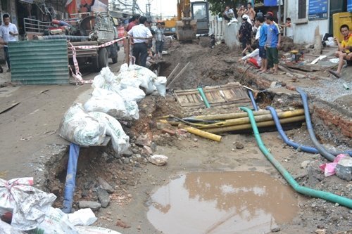 Một nhân viên của xí nghiệp kinh doanh nước sạch quận Hai Bà Trưng cho hay, nguyên nhân của sự cố trên do trong quá trình thi công cống thoát nước dân sinh, không may đơn vị thi công đã làm vỡ đường ống cấp nước sạch.