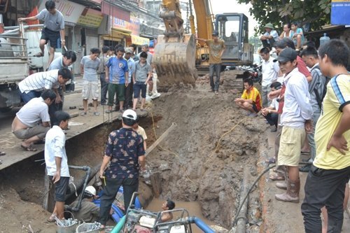 Nhiều người dân sống tại khu vực này kể lại: Đang đêm ngủ thấy có tiếng nước chảy xối xả, ào ào ngoài đường, mở cửa chạy ra thì thấy nước phun lên từ đường ống cấp nước sạch trong khu dân cư.