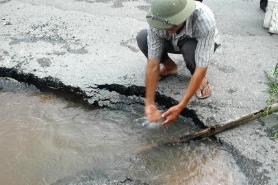 ngày hôm nay, tại khu vực này xuất hiện một cái hố sâu có đường kính gần 1m. Do