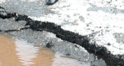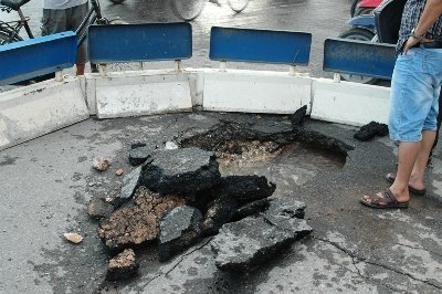 không có biển báo và barie rào chắn, nên mặt đường quanh miệng hố ngày càng được