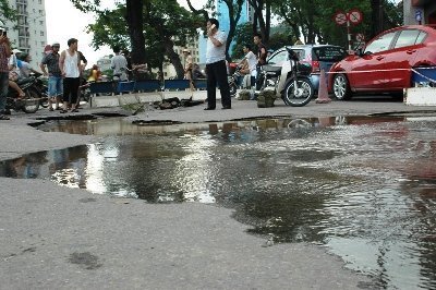 Sự cố chưa được khắc phục thì vào khoảng 15h ngày 23/6 một chiếc taxi lưu thông hướng Láng Hạ - Lê Văn Lương đi qua bị sụt bánh xe xuống hố làm cho mặt đường càng sạt lở, nước ùn ùn đẩy lên. Đến lúc này, người ta mới xác định là ống nước ở phía dưới bị vỡ.