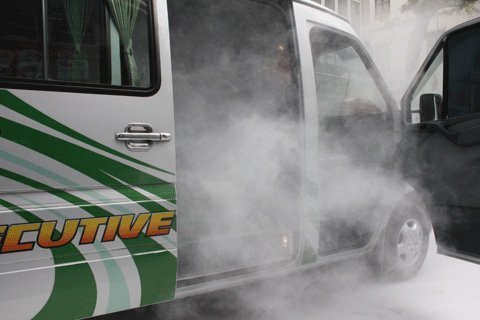 xe ô tô 16 chỗ Mercedes - Benz mang BKS 148- 00273 đã bốc cháy dữ dội.