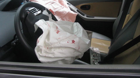 Xe ô tô bị vỡ nát phần đầu sau khi đâm vào rào chắn |