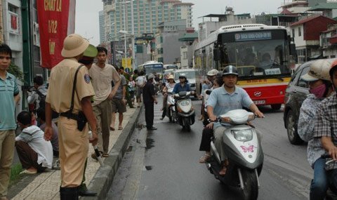 Vụ tai nạn đã khiến đường đê Nghi Tàm ùn tắc kéo dài nhiều giờ liền.