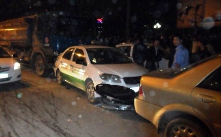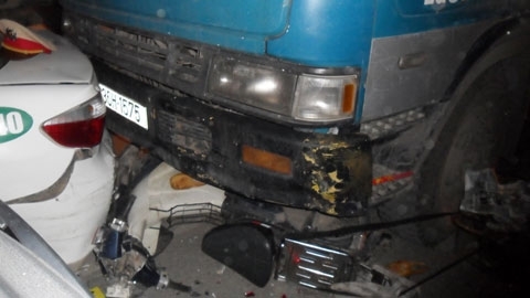 Cú đâm mạnh xuất phát từ chiếc xe tải chở xăng khiến một người (đi xe mang BKS 29L- 35R5) chết tại chỗ. Ba chiếc ô tô và một xe máy hư hỏng khá nặng.