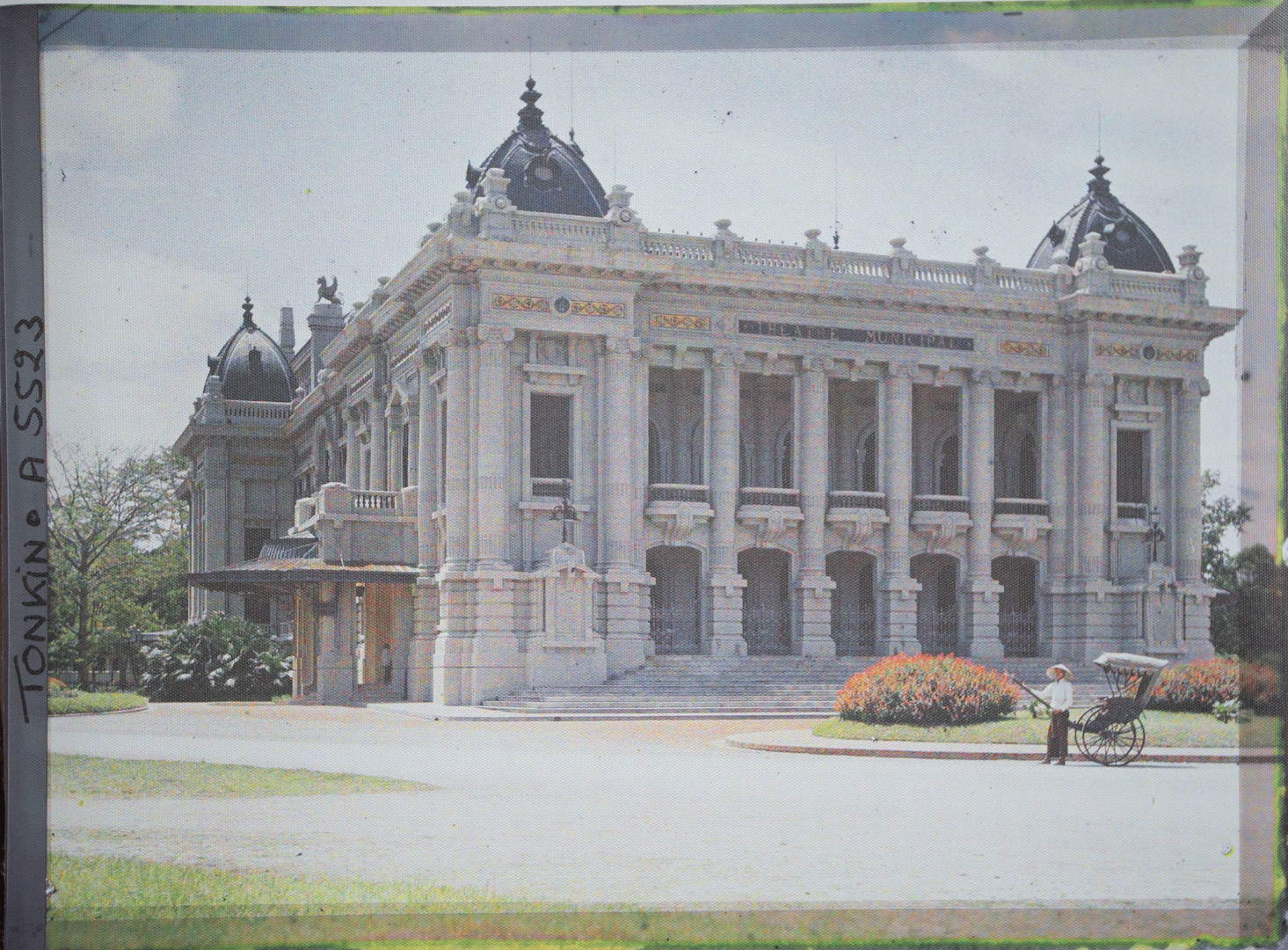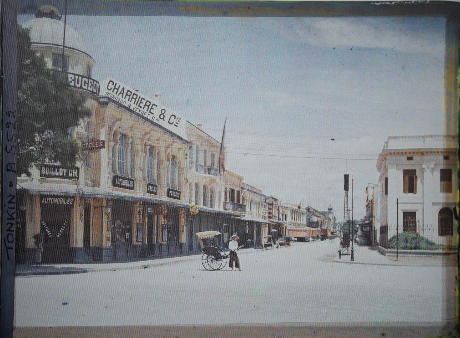 Phố Paul Bert (nay là phố Trang Tiền) chụp từ quảng trường Nhà hát Thành phố. Con phố này do người Pháp mở đầu tiên nhanh chóng trở thành huyết mạch chính của thủ đô, như một hình ảnh đại diện của xã hội đương thời với các cửa hàng sang trọng và lối đi dạo cho tầng lớp giàu có trong thành phố.