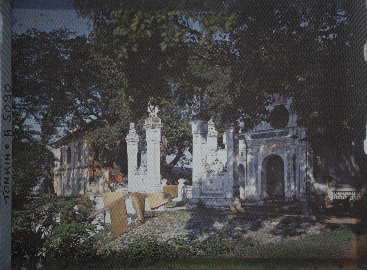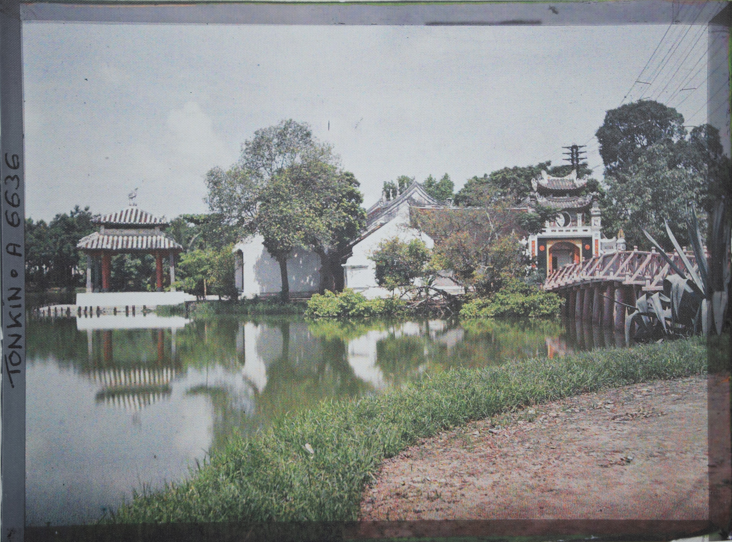 Đền Ngọc Sơn (người châu Âu gọi chùa Bút) nằm trên đảo Ngọc của hồ Hoàn Kiếm. Bức ảnh này cũng cho thấy các tuyến dây điện được kéo ra đảo Ngọc trên hồ Hoàn Kiếm. Hệ thống chiếu sáng công cộng được lắp đặt tại Hà Nội từ rất sớm: đường phố được lắp cột đèn điện từ năm 1895 trong khi đó đèn đường lần đầu tiên xuất hiện tại Pháp từ năm 1878.