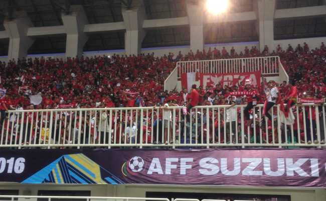Hò reo cổ vũ đội nhà suốt trận, làm đối thủ hoảng hốt bằng những tiếng trêu chọc rồi cả pháo sáng, vỗ tay theo kiểu "chiến binh Viking" là những gì mà các CĐV Indonesia làm ở sân Pakansari.