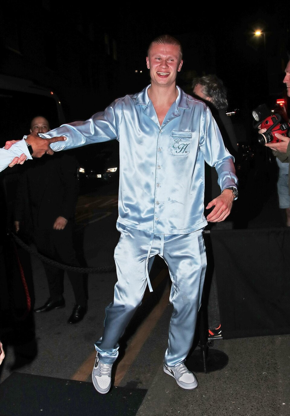 Erling Haaland cùng bạn gái Isabel Johansen mặc trang phục "tone sur tone" màu xanh da trời đi dự lễ ăn mừng chức vô địch tại hộp đêm Manchester.