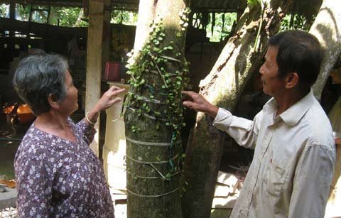 | Hai vợ chồng bên cây thuốc. Ảnh: Quốc Huy |