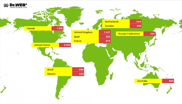 Dr. Web đã công bố số máy tính mà họ tin là đã bị nhiễm iWorm. Tính đến ngày 26/9, đã có 17,658 máy Mac bị nhiễm iWorm bị phát hiện, trong đó có các máy Mac tại Mỹ, Canada, Hà Lan, Anh, Nga…. Theo sơ đồ lây nhiễm này của Dr. Web, chưa có máy Mac nào tại Việt Nam bị nhiễm iWorm.