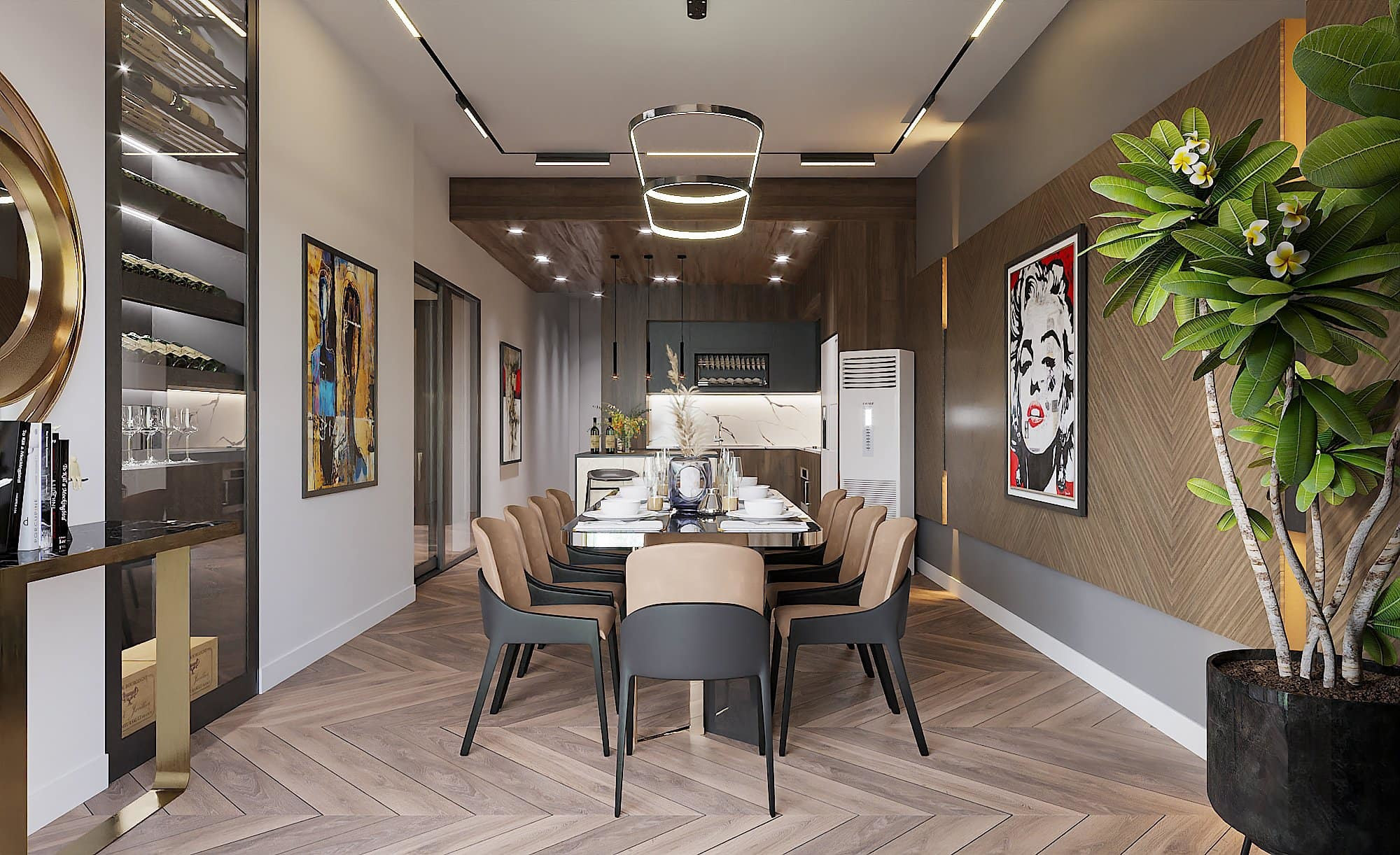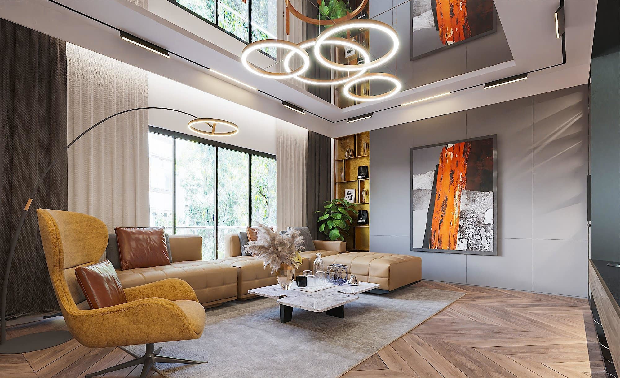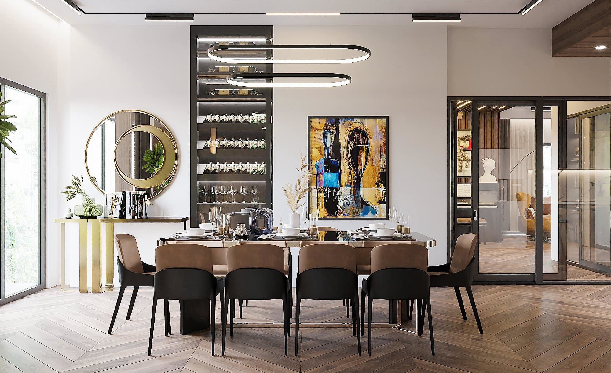 Bên trong căn biệt thự thiết kế theo phong cách sang trọng, tận dụng những khoảng không ánh sáng từ bên ngoài.