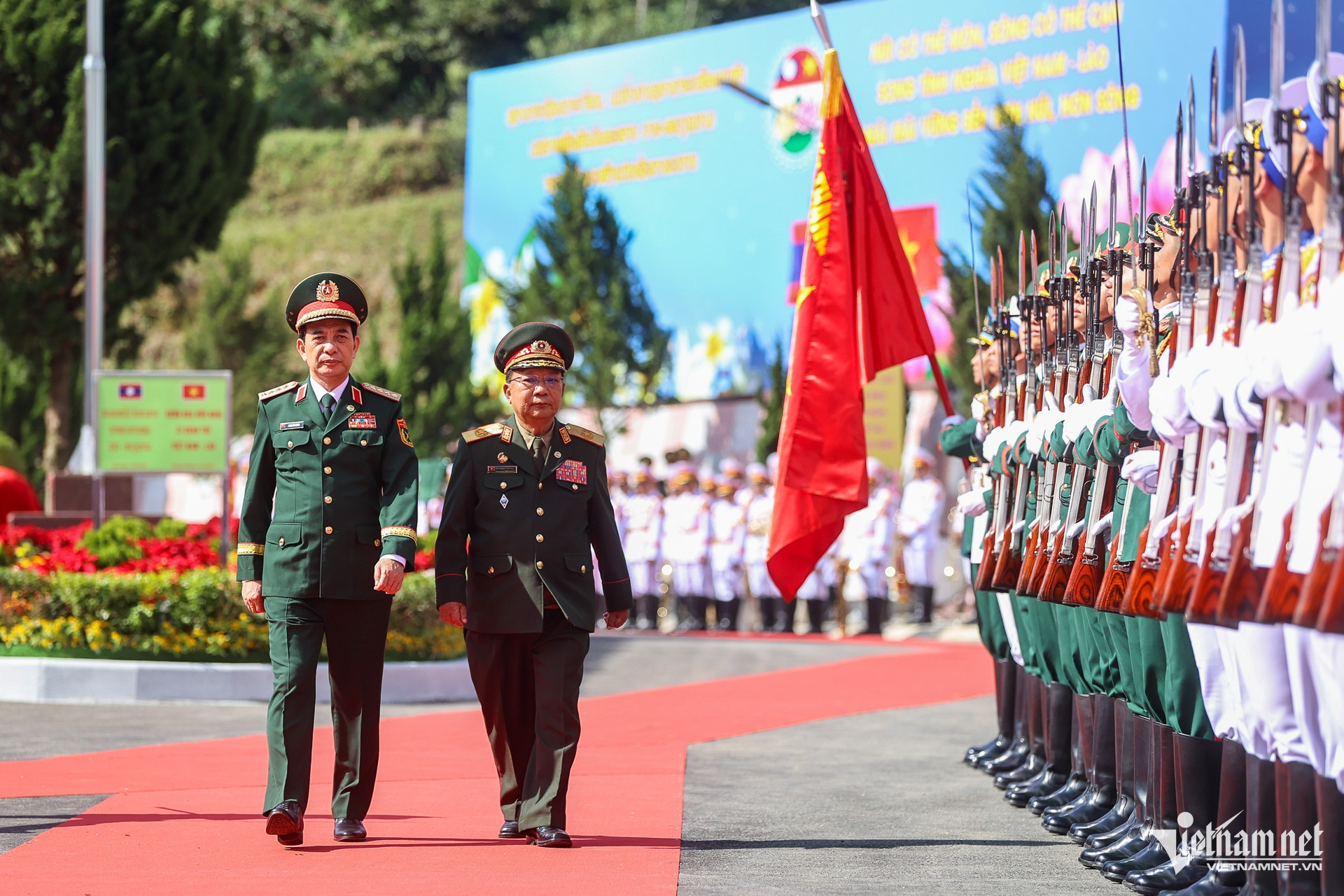Lễ đón chính thức đoàn đại biểu Lào tại Cửa khẩu Lóng Sập sang huyện Mộc Châu diễn ra chiều nay dưới sự chủ trì của Đại tướng Phan Văn Giang.