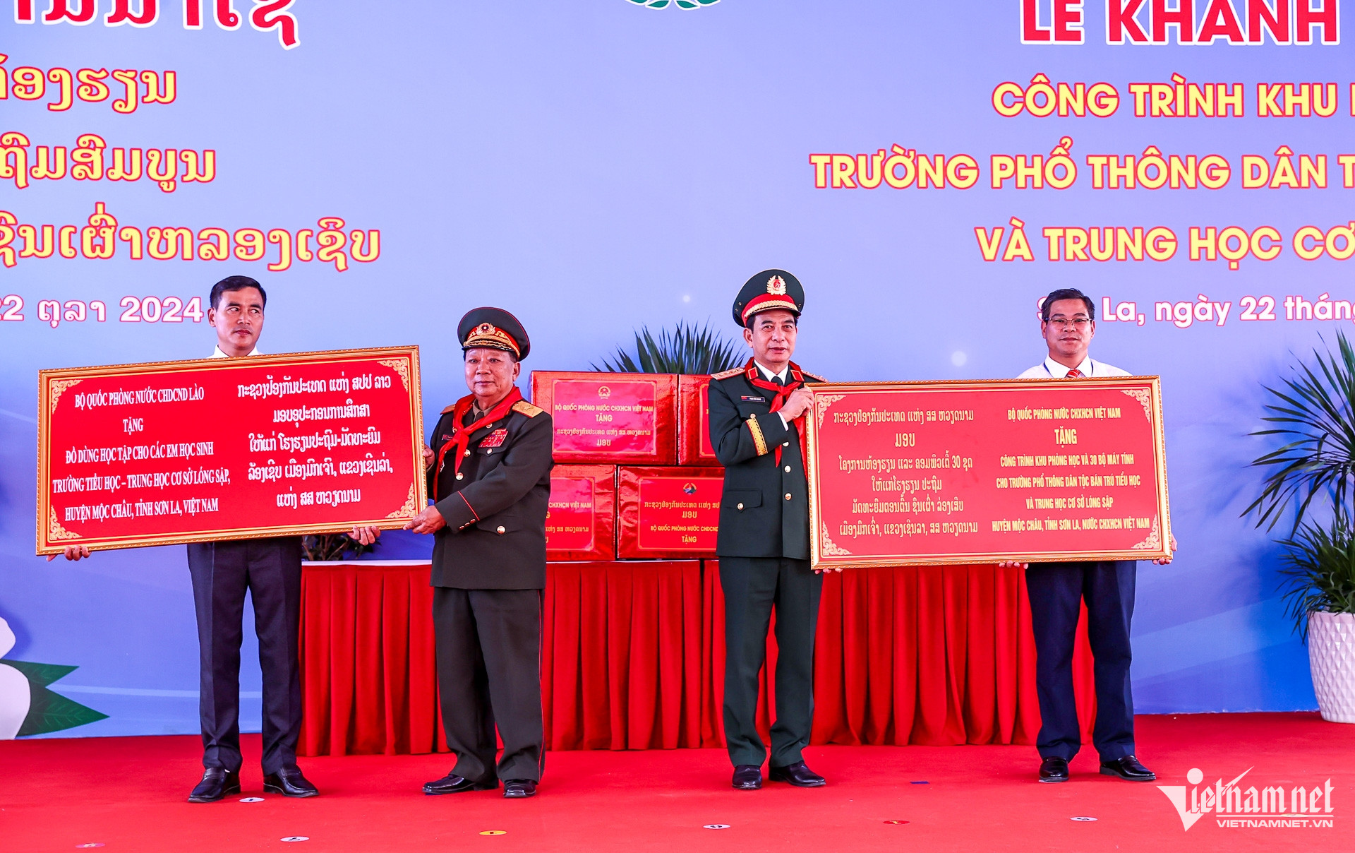 Lãnh đạo Bộ Quốc phòng hai nước đã dự lễ khánh thành công trình khu phòng học Trường Phổ thông dân tộc bán trú Tiểu học và Trung học cơ sở Lóng Sập.