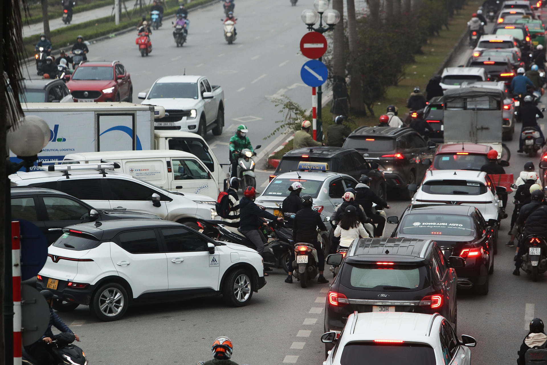 Sau phản ánh của báo VietNamNet về tình trạng ùn tắc tại tuyến đường Trần Hữu Dực - Trịnh Văn Bô (quận Nam Từ Liêm, Hà Nội), sáng 21/2, Thiếu tá Hoàng Văn Bình - Phó Đội trưởng Đội CSGT đường bộ số 6 (Phòng CSGT Công an TP Hà Nội) phối hợp cùng đại diện Ban Duy tu các công trình giao thông (Sở GTVT Hà Nội) đã khảo sát thực tế, bàn phương án tháo gỡ.