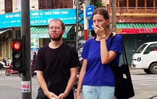 Theo xác minh của công an, chiều 15/3, tại ngã tư đường Hùng Vương cắt Trần Cao Vân (TP Tam Kỳ) xuất hiện hai người nước ngoài cầm bảng bằng bìa carton có nội dung “cứu giúp không có tiền".