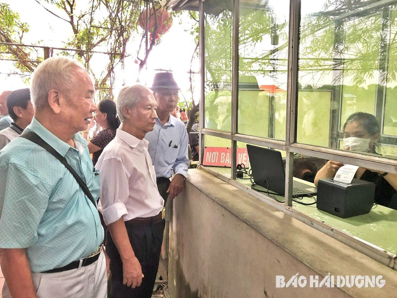 Ông Phạm Văn Hoàn ở TP Hải Dương đến tham quan tại đây cho biết: "Mua vé dịch vụ đi thuyền ra tham quan Đảo Cò tôi chỉ cần báo số lượng người trong đoàn, sau đó rất nhanh được nhân viên bán vé điện tử thao tác trên máy tính rồi in toàn bộ 37 vé cho đoàn".