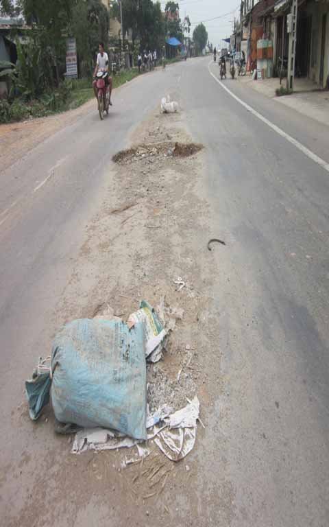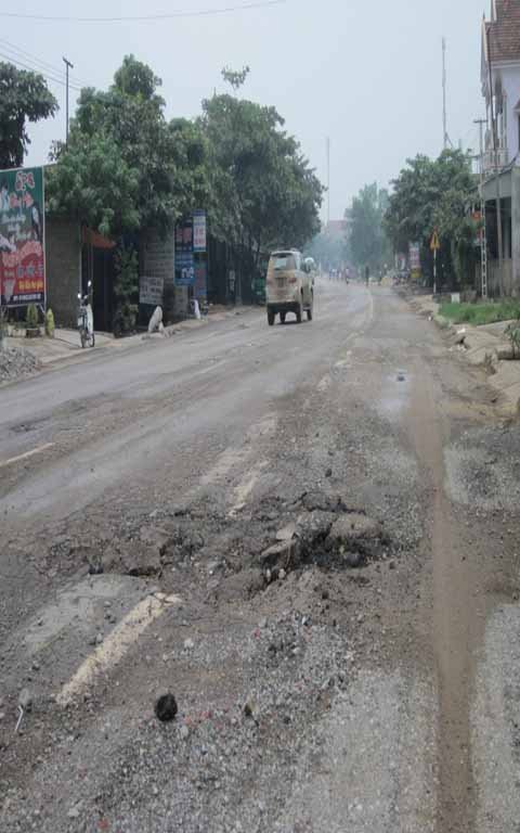 Theo tìm hiểu của chúng tôi, tuyến đường khởi công, nâng cấp từ tháng 4/2006. Dự án này do PMU18 (Bộ Giao thông Vận tải) làm chủ đầu tư và đưa vào sử dụng cách đây 2 năm. Vậy nhưng kể từ khi được đưa vào sử dụng thì con đường này đã xuất hiện hư hỏng, xuống cấp trầm trọng. Chỉ cần một lần chạy xe trên tuyến đường dài khoảng 20 km vào thời gian này, mọi người sẽ dễ dàng chứng kiến được đến hàng trăm bẫy "tử thần". Có đoạn cả hàng chục mét mặt đường bị bong toác phần nhựa, trơ trọi đất đá làm biến dạng hẳn cung đường.