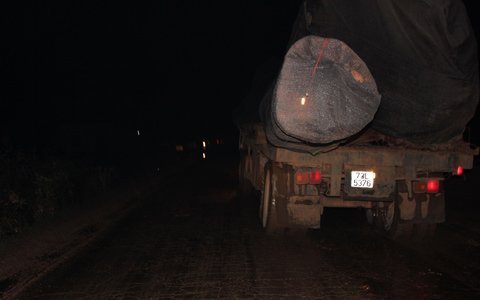 | Hình ảnh 1 chiếc xe chở gỗ chạy trong đêm. Những hình ảnh này rất quen thuộc ở Hà Tĩnh thế nhưng rất ít khi thấy CSGT và cá lực lượng chức năng khác xử lý. |