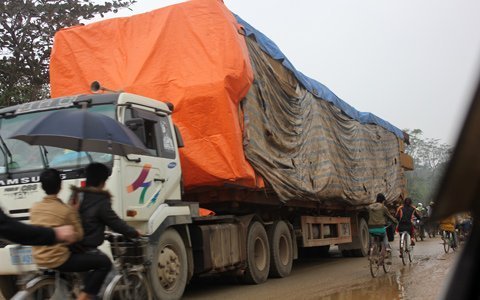 Phần lớn các container này đều chở quá tải và không che hết phần gỗ chở trên xe khiến người tham gia giao thông rất lo sợ khi nhìn thấy những phiến/lóng gỗ thòi ra ngoài.