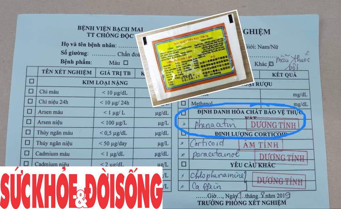 Kết quả xét nghiệm độc lập được gia đình chị T đưa đi kiểm tra tại BV Bạch Mai cho thấy trong gói thuốc này chứa phenacetin là một loại chất gây ung thư đã bị FDA Hoà Kỳ cấm từ năm 1983