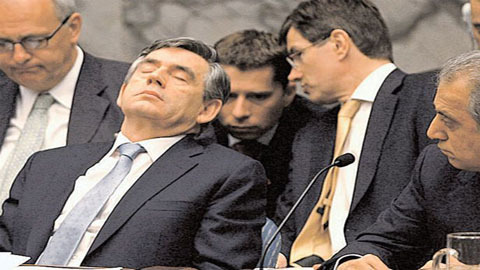 | Thủ tướng Anh - Gordon Brown chợp mắt một cách tự nhiên trong phiên họp của Hội đồng Bảo an Liên Hợp Quốc (Ảnh: Independent) |