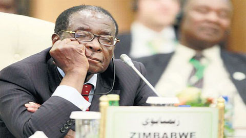 | Tổng thống Zimbabwe - Robert Mugabe lim dim trong khi Gaddafi đang phát biểu. (Ảnh: Independent) |