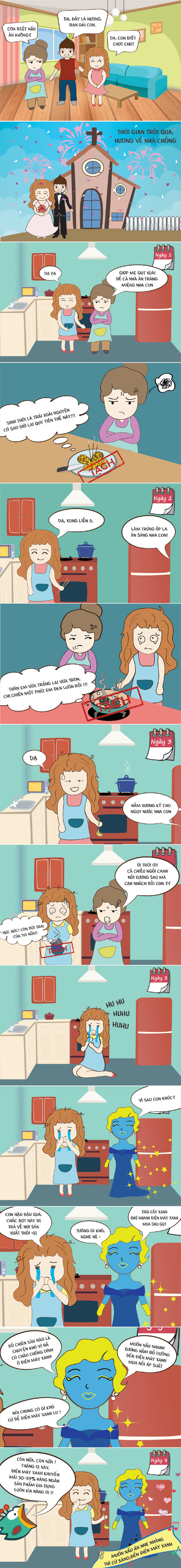 Cư dân mạng đang lan truyền truyện tranh hài hước về mẹ chồng - nàng dâu thời hiện đại với sự xuất hiện bất ngờ của “bà tiên” Điện máy Xanh.