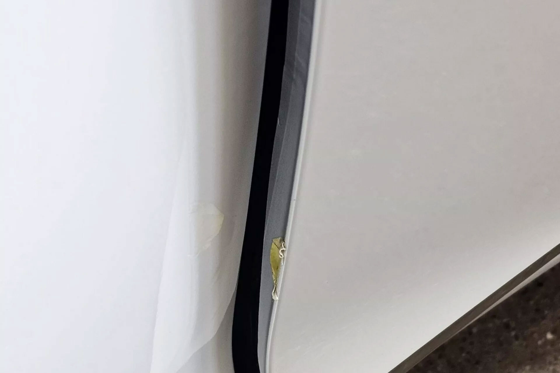 Đáng chú ý, câu chuyện tưởng chừng như đã dừng lại ở đó. Nhưng sau khi hoàn tất giao dịch, Mike đã mang chiếc G80 2023 mới mua đi dán phim bảo vệ sơn. Tại đây, kỹ thuật viên phát hiện ra chiếc xe này đã từng được sửa chữa thân vỏ, lốp xe không đồng bộ, một số vị trí sơn bị lem màu, băng dính che sơn còn sót lại và keo bị bong tróc.