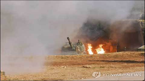 | Pháo Triều Tiên tạo nên những đám cháy ở phía Hàn Quốc |