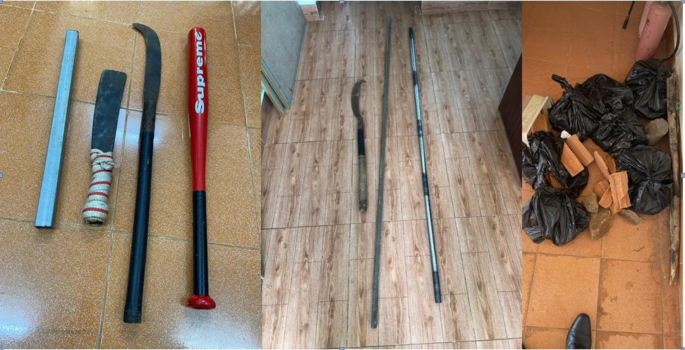 Tại đây, 2 nhóm dùng gạch, đá, gậy ném qua lại lẫn nhau gây thương tích. Chưa dừng lại, nhóm của Kha còn dùng gạch, đá, gậy đánh bóng chày, ống tuýp sắt và dao tự chế để đập phá làm hư hỏng nhà cửa của người dân 2 bên đường.
