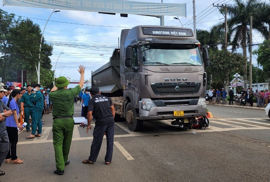 Hậu quả, ông X. và cháu L. bị cuốn vào gầm xe tải, tử vong tại chỗ.