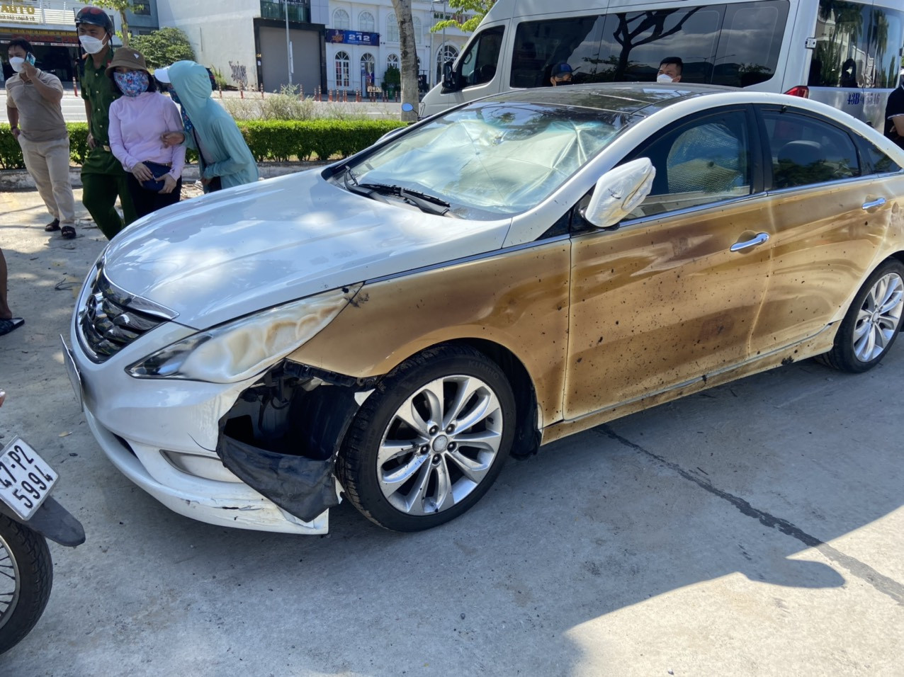 Trưa 4/9, ô tô 16 chỗ biển số tỉnh Quảng Nam đang đỗ trong bãi giữ xe nhà hàng tiệc cưới nằm trên đường 2 Tháng 9 (phường Hoà Cường Bắc, quận Hải Châu, TP Đà Nẵng) thì bốc cháy ở trước ca bin.