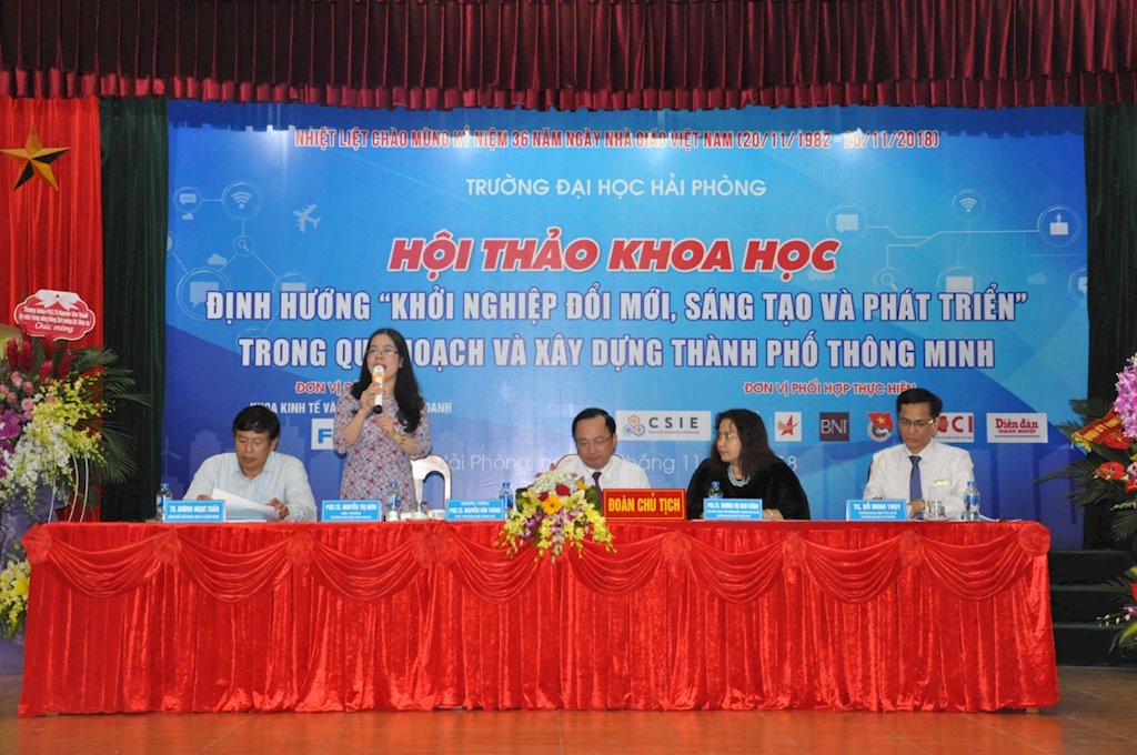 Theo tin từ Bộ Khoa học và Công nghệ, chiều ngày 16/11/2018, Trường Đại học Hải Phòng phối hợp với Báo Diễn đàn Doanh nghiệp, Trung tâm Khởi nghiệp và Sáng tạo Xã hội (CSIE - Đại học Kinh tế Quốc dân) và Thành Đoàn Hải Phòng tổ chức Hội thảo khoa học “Định hướng khởi nghiệp đổi mới, sáng tạo và phát triển trong quy hoạch và xây dựng thành phố thông minh”.