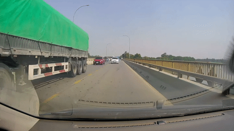 Có thể tài xế chiếc Kia Morning đã phát hiện ra khoảng trống giữa xe gắn camera hành trình và xe máy nên quyết định đi ẩu để tiết kiệm đường rẽ vào dãy nhà hàng bên đường Quốc lộ 5, thay vì phải đi vòng thêm một quãng nữa.