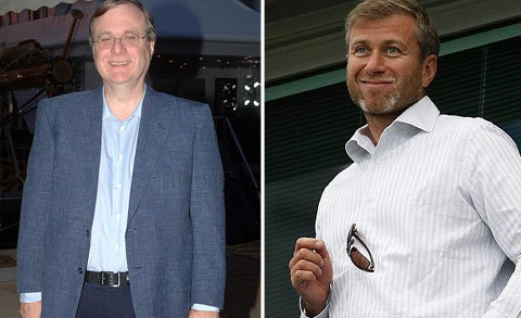 Roman Abramovich và Paul Allen đều nằm trong danh sách 100 người giàu nhất thế giới của tạp chí Forbes, với Abramovich đứng ở vị trí 53 còn Allen đứng thứ 57.