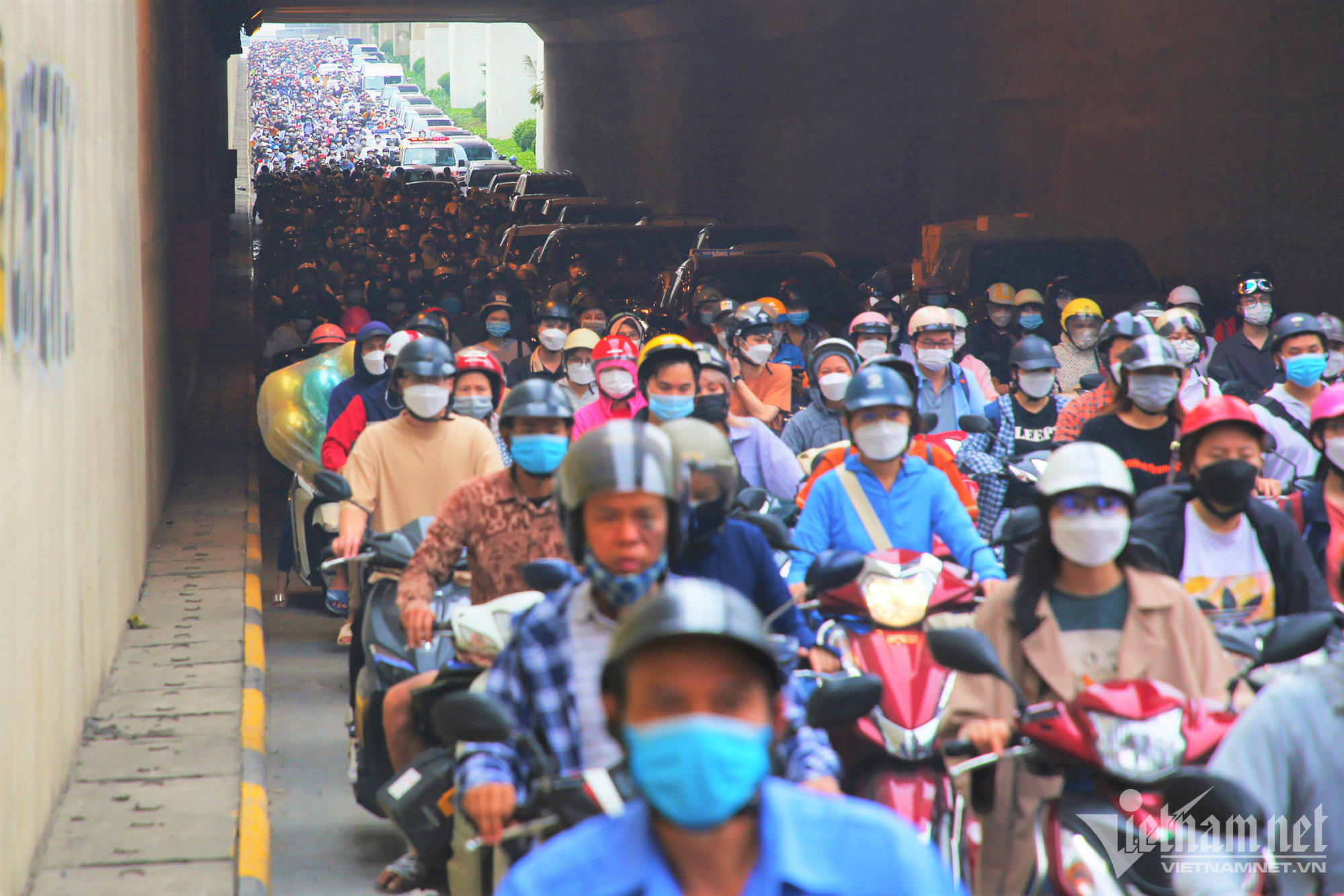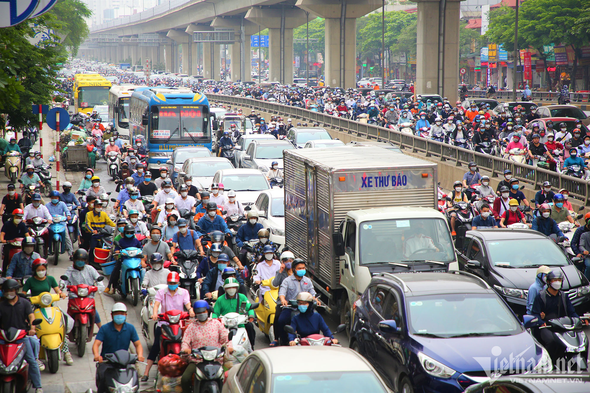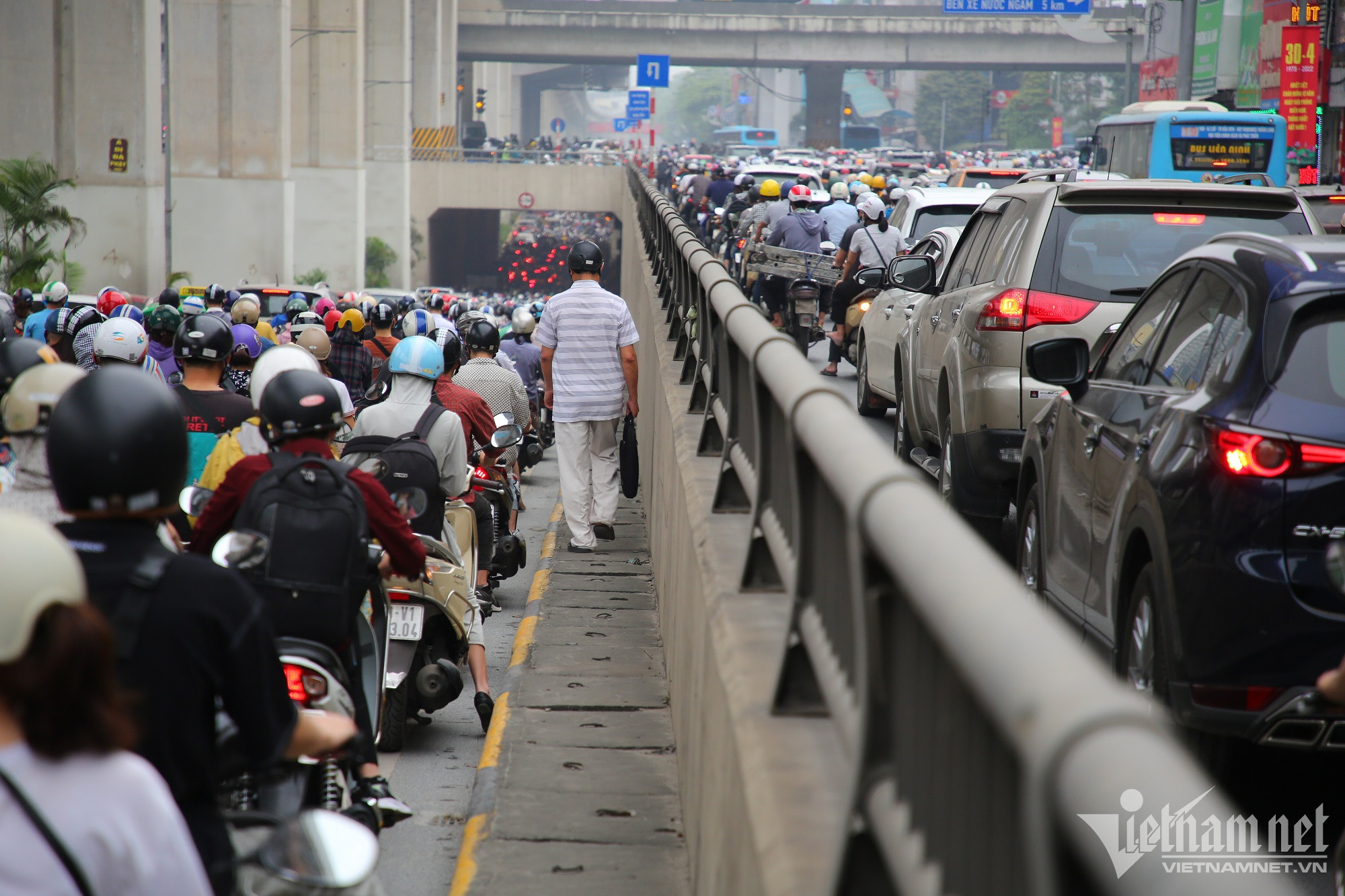 Lối xuống hầm chui Nguyễn Trãi kẹt cứng phương tiện. Đoạn đường Nguyễn Trãi (hướng từ Hà Đông – Thanh Xuân) bị ùn tắc hơn 3km.