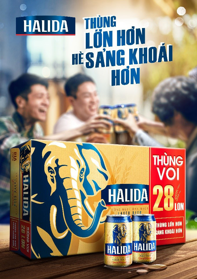Người ta vẫn nói: “Bạn bè mang cho nhau niềm vui, còn bạn chí cốt thì sẽ mang bia”! Với màn tái xuất của thùng bia Voi 28 lon, hè này, Halida mong muốn có thể “giải nóng” và “giải khó” cho hội anh em bằng những chầu bia mát lạnh. Nhờ thùng bia lớn hơn, cuộc vui của anh em sẽ càng thêm vui vẻ và sảng khoái. Thêm bia, mùa hè càng thêm hứng khởi còn anh em thì thoải mái rủ thêm chiến hữu chung vui. Hơn thế nữa, với diện mạo chai xanh mới, trẻ trung và hiện đại hơn, Halida sẽ “phủ xanh” bàn tiệc hè này, giúp hội anh em cùng nhau nối dài những tiệc bia mát lạnh.