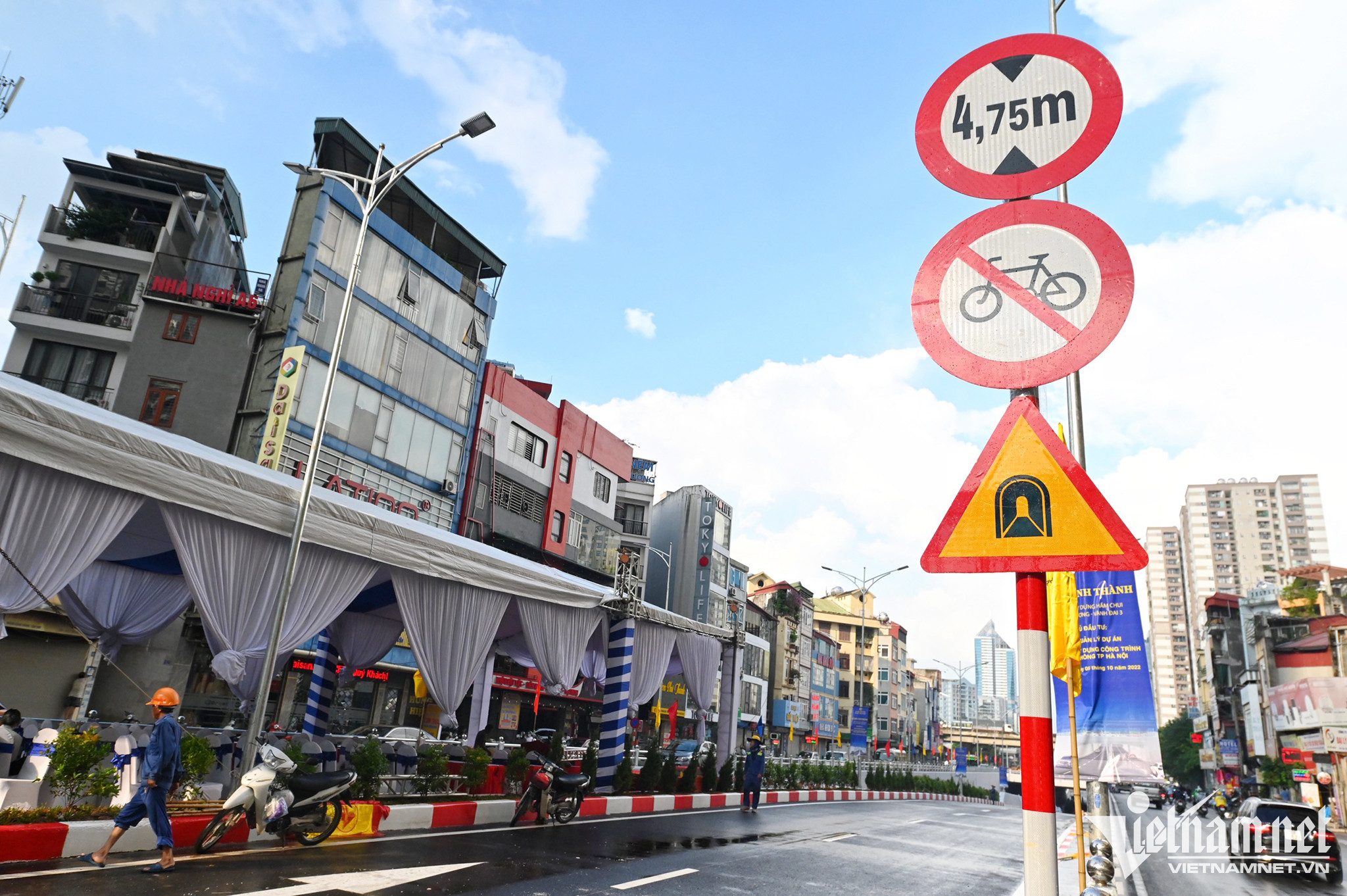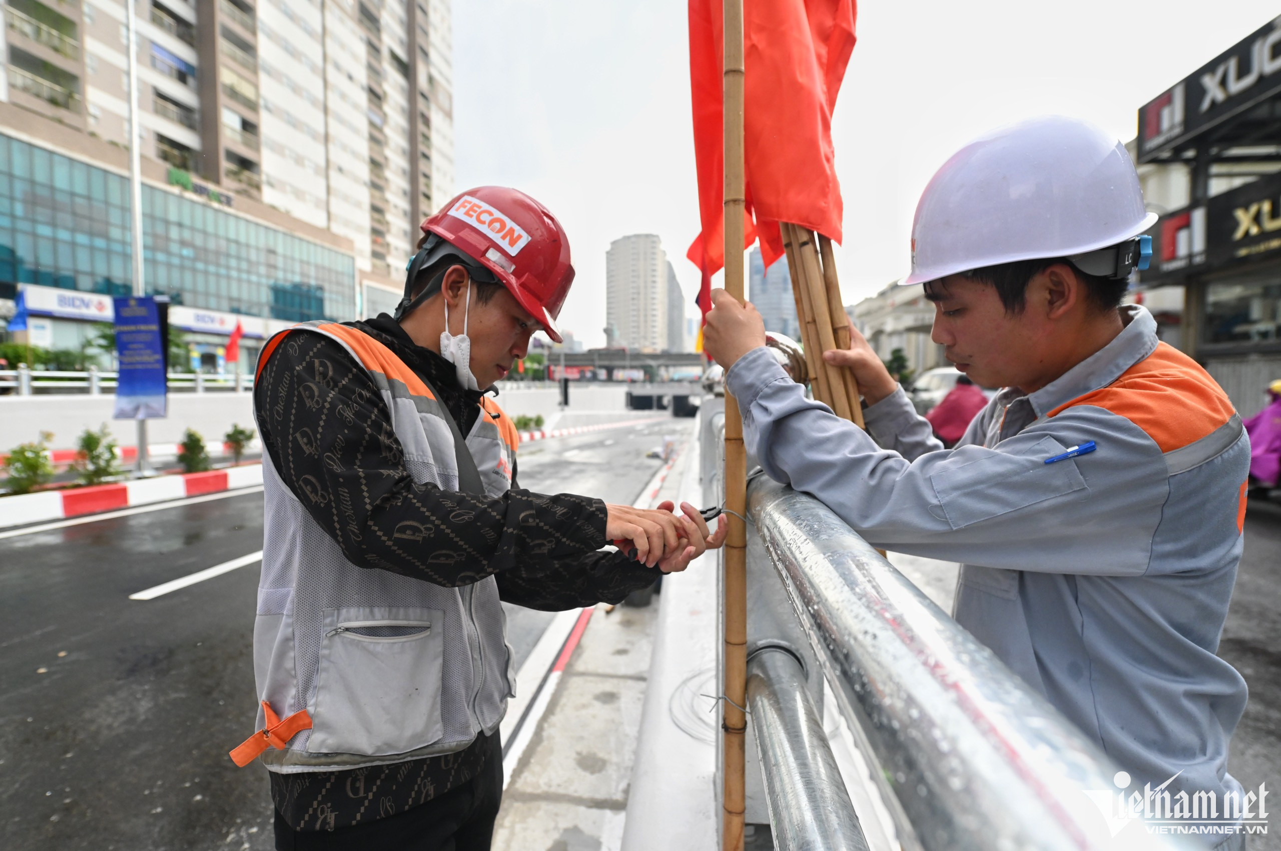 Hầm chui Lê Văn Lương - Tố Hữu là hầm chui thứ 4 ở thủ đô, hiện hoàn tất thi công, chuẩn bị thông xe kỹ thuật vào ngày mai (5/10). Đây là một trong 6 dự án giao thông trọng điểm của TP.Hà Nội được khởi công từ tháng 10/2020 với tổng mức đầu tư gần 700 tỷ đồng (trong đó chi phí xây dựng hơn 532 tỷ đồng được trích từ nguồn ngân sách thành phố).Hầm được thiết kế bằng kết cấu bê tông cốt thép với tổng chiều dài hầm và gờ chắn hai đầu khoảng 475m.Hầm chui được xây dựng theo hướng Lê Văn Lương đi ngầm qua ngã tư Khuất Duy Tiến - Tố Hữu. Nút giao này có lưu lượng phương tiện vô cùng lớn, thường xuyên ùn ứ kéo dài, đặc biệt vào giờ cao điểm.Dự án có mục tiêu hoàn thiện hạ tầng giao thông và xóa ''điểm đen'' ùn tắc tại nút giao Lê Văn Lương - Tố Hữu và đường Vành đai 3.Chiều 4/10, khu vực đường Lê Văn Lương mưa nặng hạt. Để đảm bảo tiến độ, công nhân vẫn phải làm việc, lắp đặt cờ, phướn, banner chào mừng.Các lối dẫn xuống hầm chui Lê Văn Lương hiện được rào chắn để ngăn chặn tình trạng người đi xe máy phóng vào.Dải phân cách, vạch kẻ đường chỉ dẫn giao thông vừa sơn mới và đã khô.Theo đại diện Tập Đoàn Cienco4 (đơn vị thi công), với sự quyết tâm cao của nhà thầu, hầm chui Lê Văn Lương đã vượt tiến độ khoảng 2 tháng so với kế hoạch đăng ký (quý IV/2022).Hầm cơ giới Lê Văn Lương - Tố Hữu là hầm chui thứ 4 của Hà Nội ngoài các hầm Kim Liên, Trung Hòa và Nguyễn Trãi.