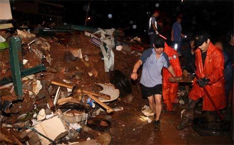 Các khách sạn, nhà hàng và quán cà phê bị tàn phá khi lở đất xảy ra vào lúc nửa đêm qua (26/7).