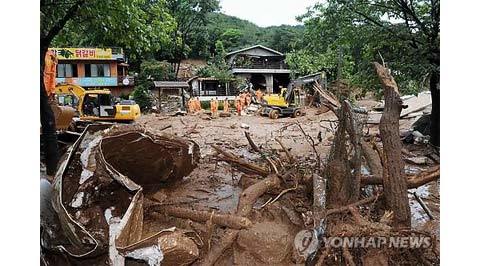 Một số hình ảnh mưa lụt và lở đất ở Hàn Quốc: