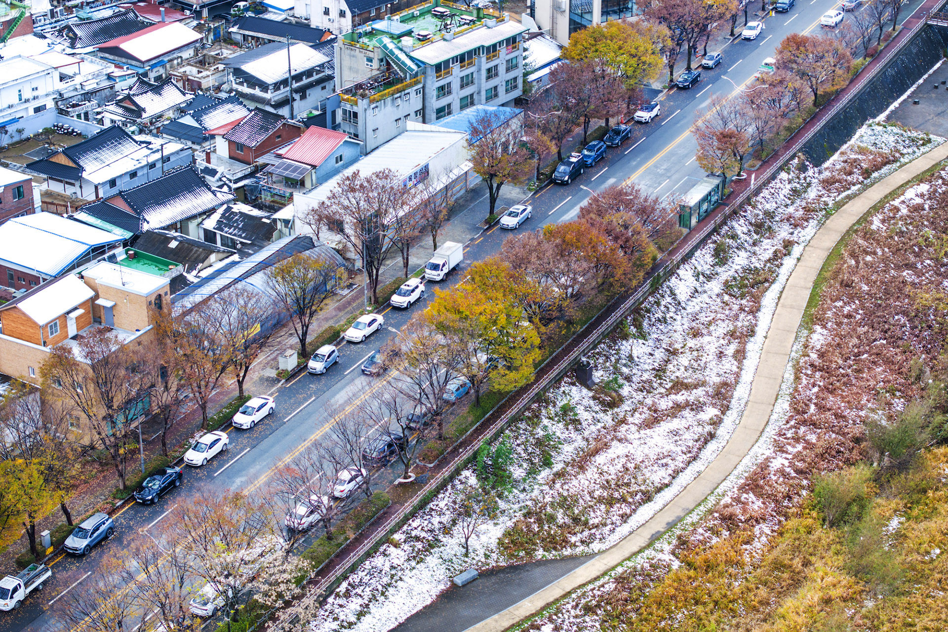 Tại Seoul, ở bất cứ ngóc ngách nào, người ta cũng có thể gặp lá rụng trải thảm khi thời tiết vào thu. Vào khi tiết trời giao mùa để sang đông, cảnh tượng này còn xuất hiện nhiều hơn thế.