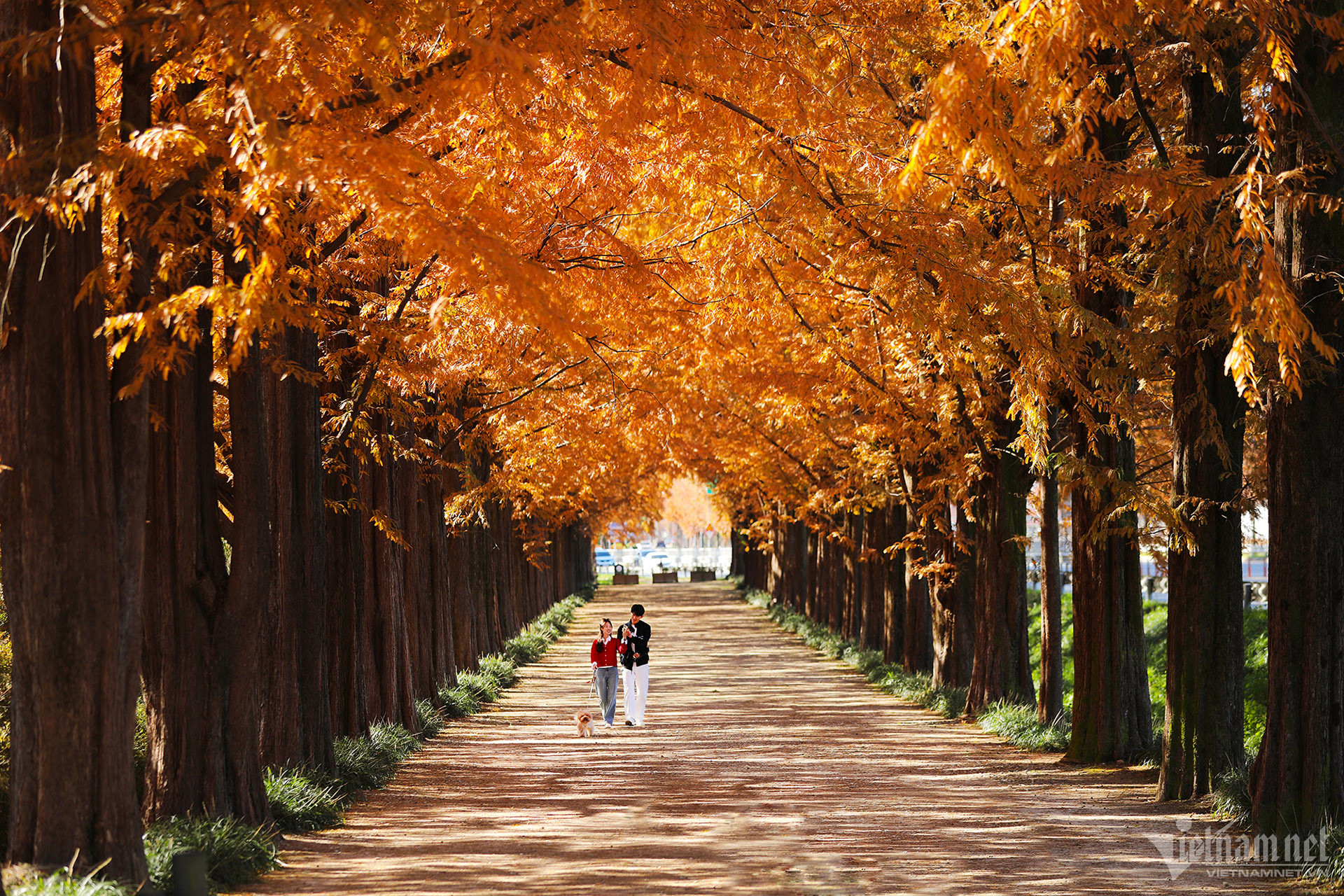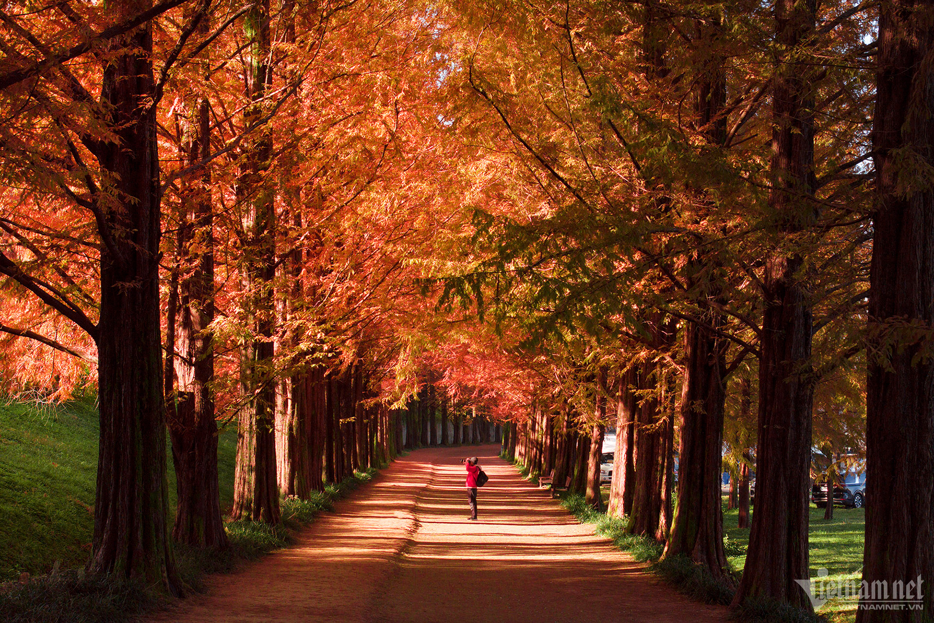 Một trong những địa danh nổi tiếng không thể không nhắc đến mỗi khi Hàn Quốc vào thu là con đường hàng cây thủy sam già thẳng tắp được trồng từ những năm 1970. Tháng 11, cả khu vực này được nhuộm các màu vàng, cam, đỏ rực, đẹp lãng mạn, thu hút rất nhiều du khách và người dân tới dạo chơi.