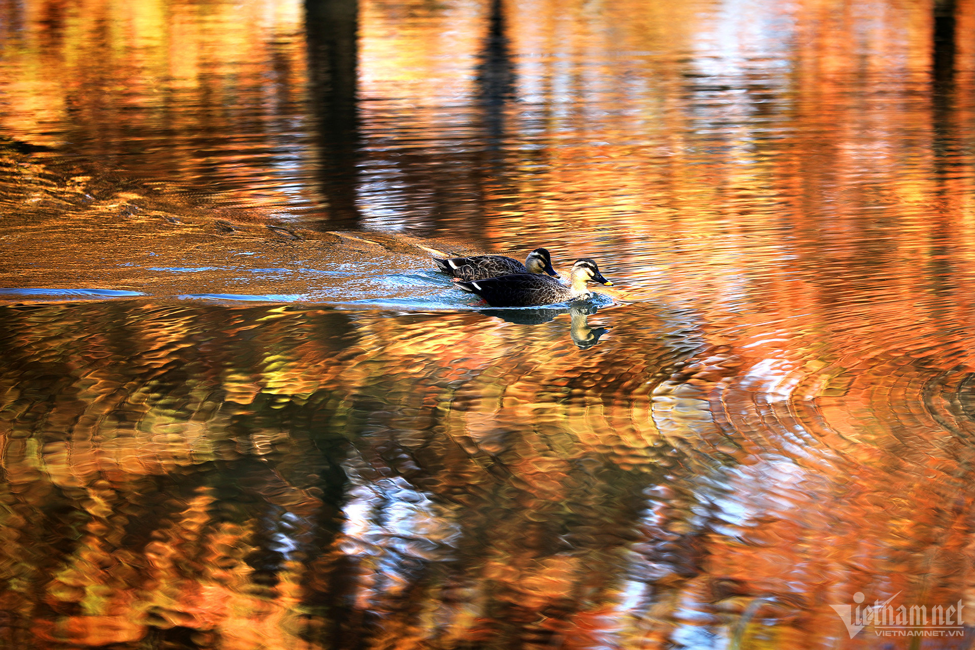 Một chú mùa thu còn sót lại ở Seoul. Theo quan sát của nhiếp ảnh gia Vũ Minh Quân đang có mặt tại xứ kim chi, càng về phía Nam thành phố, cảnh sắc vàng rực càng nhiều, còn ở phía bắc thủ đô lá đang rụng dần.