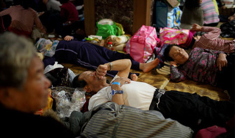 Tại In Spa World, một trung tâm giải trí giờ đây giống như một trại tị nạn, vài trăm người trên đảo đến đây tìm chốn an toàn. Họ ngủ trên sàn, hay xếp hàng ở một khu vực phát đồ ăn do những người tình nguyện dựng lên tạm thời.