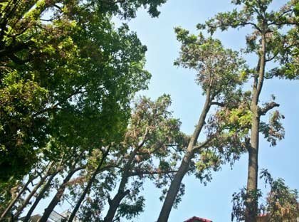 Thế nhưng, hàng cây sao đen từng được ví như những thân hình lực sĩ ấy giờ đã mang trên thân mình bao nhiêu vết thương do chính con người gây ra. Dẫn tôi đến cây sao đen ở gần số nhà 58, ông Nguyễn Đình Cừ, Tổ trưởng tổ dân phố số 6, phường Đồng Nhân xót xa nói: "Những thế hệ lớn lên sau đã coi thân cây thành nơi đóng đinh treo biển, họ bức tử cây, hủy diệt cây từng ngày". Cây sao đen đã tồn tại qua bao nhiêu năm tháng chiến tranh khốc liệt, thế nhưng trước trước ý thức của một bộ phận người đô thị, số phận của cây trở nên chênh vênh hơn bao giờ hết.