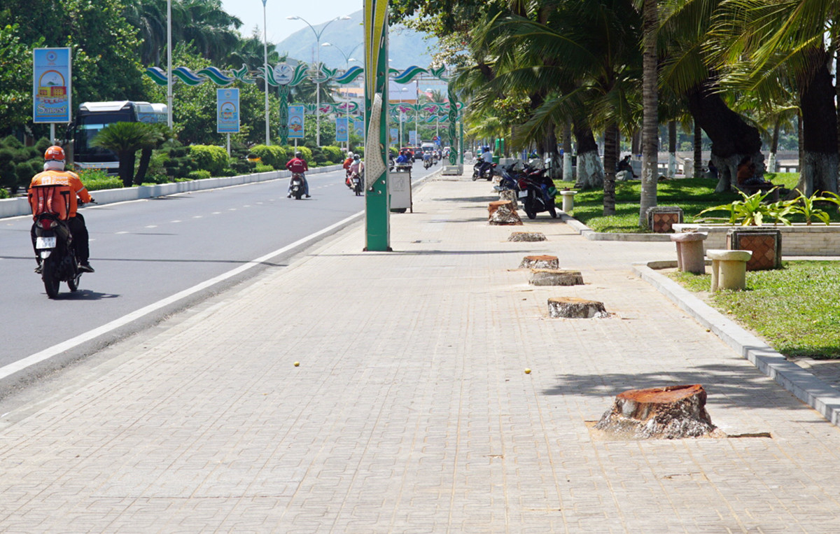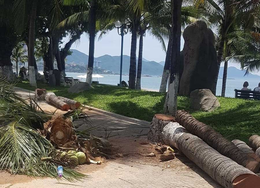 Còn một số cây dừa cao bị chặt hạ đã tồn tại từ lâu, gốc mục, và có hướng ra mặt đường. Bẹ và trái dừa bị sâu bệnh, khi rụng xuống có nguy cơ ảnh hưởng đến người đi đường. Cùng với đó, những cây dừa quá cao khiến công tác duy trì, chăm sóc gặp khó khăn. Đồng thời, dải cây xanh dọc công viên bờ biển hiện nay phần lớn là dừa đã đủ độ che mát cho vỉa hè, nhưng vỉa hè đường Trần Phú rộng khoảng 4 m, việc tồn tại cây dừa từ trước ảnh hưởng đến lối đi của người đi bộ.