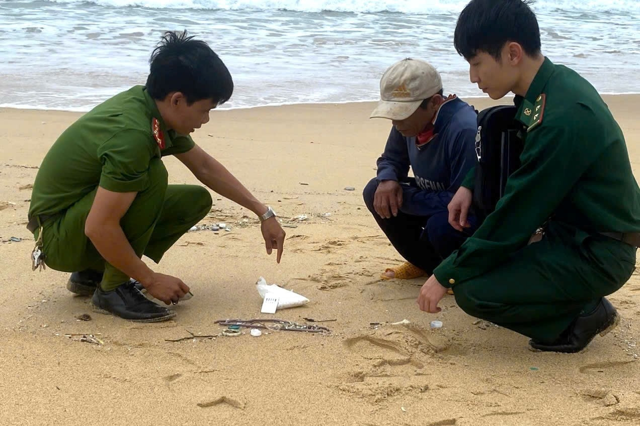 Trước đó, ngày 25/11, trong lúc tuần tra tại bờ biển thôn Thanh Thủy (xã Bình Hải), tổ công tác của Đồn Biên phòng Bình Hải phối hợp công an xã và lực lượng Vùng Cảnh sát biển 2, phát hiện nhiều túi nilon màu trắng nằm rải rác trên bờ biển.