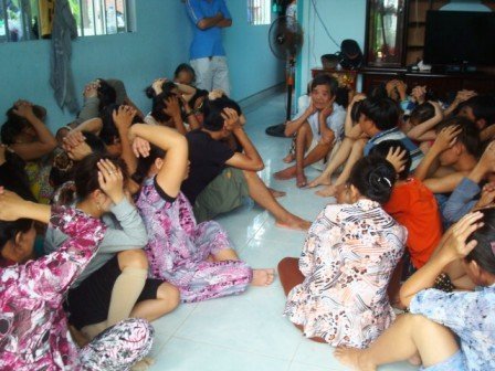| Các đối tượng bị bắt tại sòng bạc, đa số là phụ nữ |